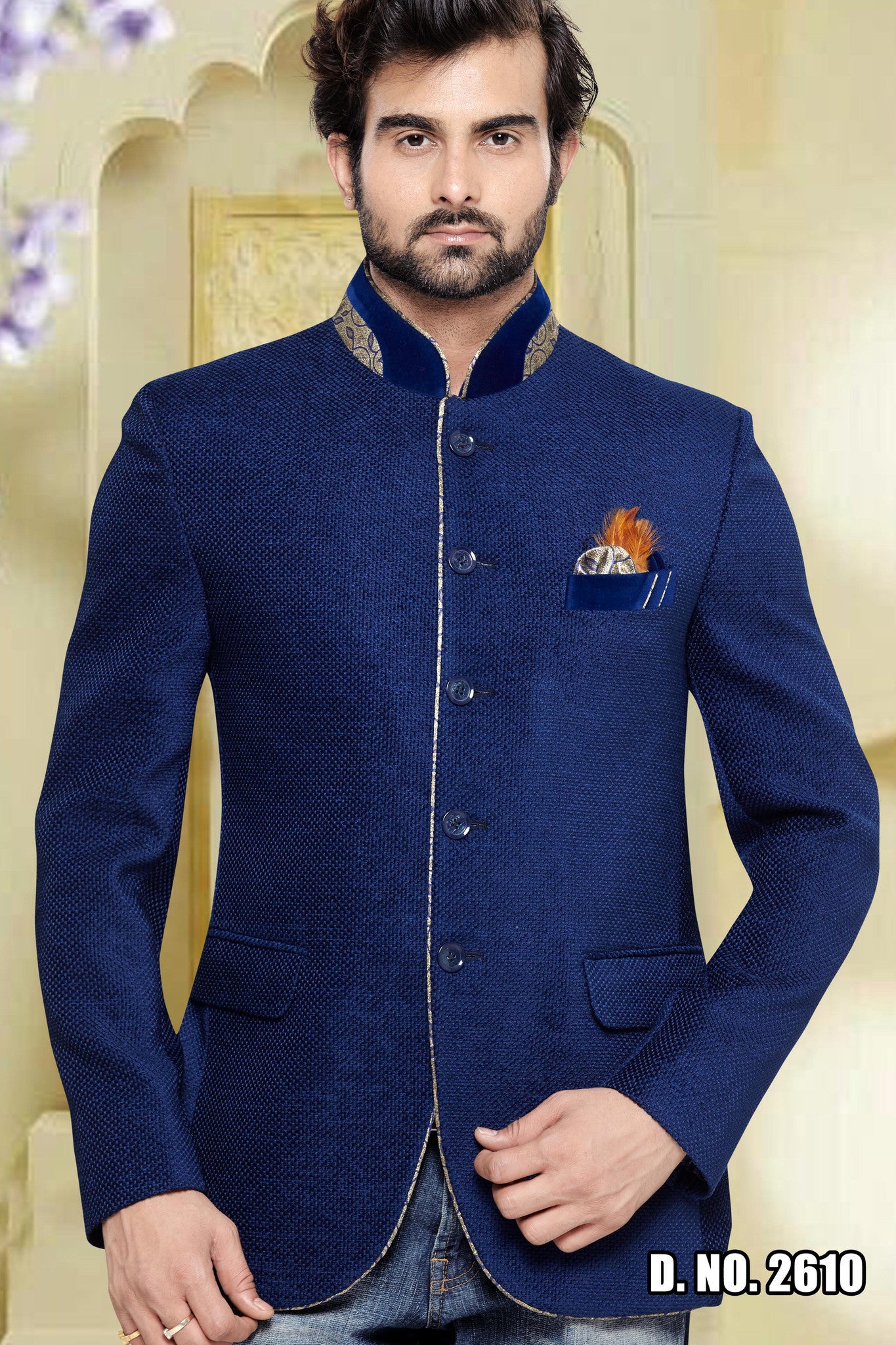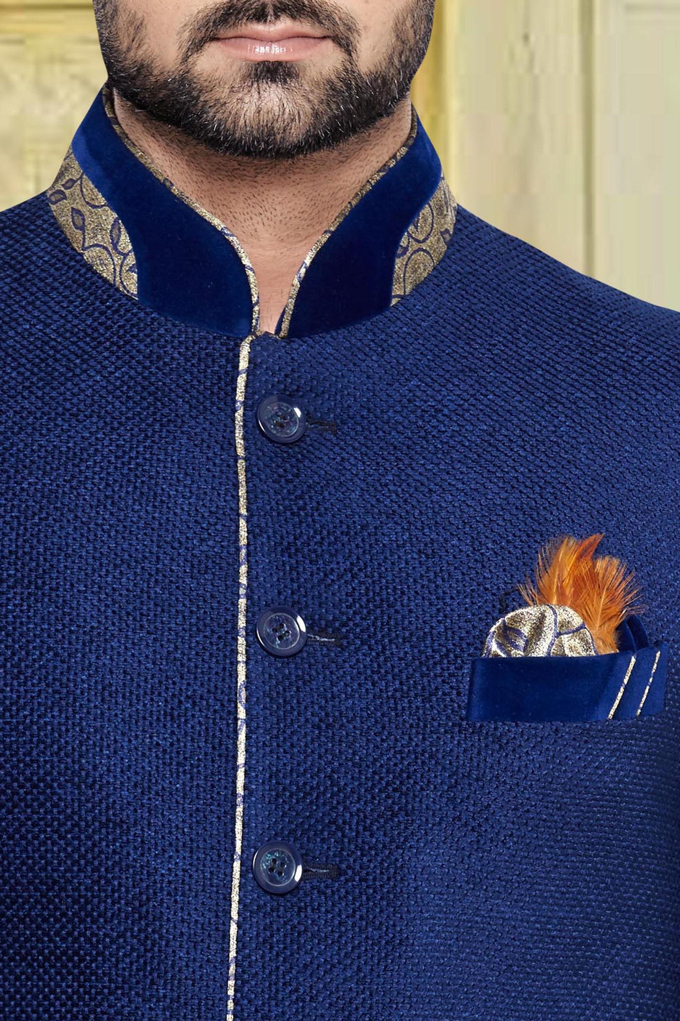 Blue Colour with the fabric of Jute Silk Bridegroom Sherwani