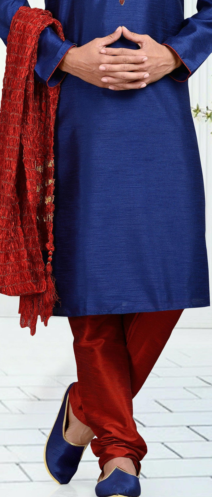 Blue Dupion Art Silk Kurta Pyjama With Stone Work