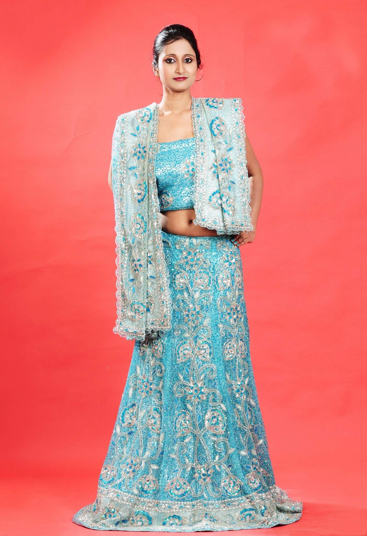 Custom Tailoring Options: Lehenga Length: 52 InchesThis product consists of unstitched lehenga, choli and dupatta fabric. To have it stitched, please select the custom tailoring options. Lehenga with elaborate patterns and colors are used for photo-shoot. Color and pattern of the lehenga might not be as shown in the image.Designs, colors and patterns on the actual product may slightly vary due to screen resolution and digital photography. Images are only representative.