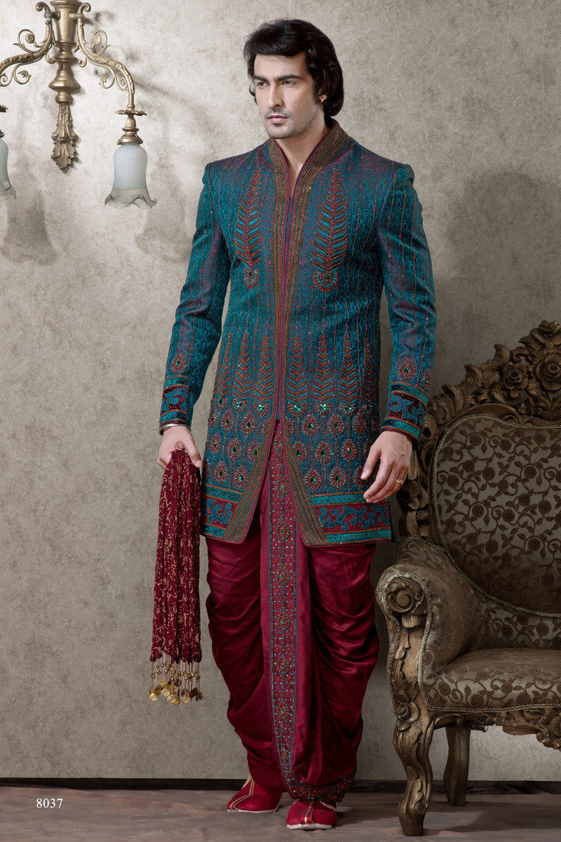 Bottol Green With Maroon Pure Banarasi Silk Dhoti Indowestern