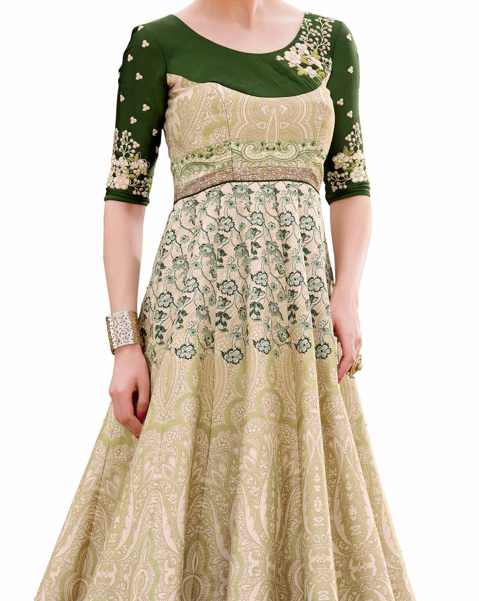 Bring Attiude yours style Art silk Green Printed work Digital printed Bridal Ethnic Semi Stich Gown