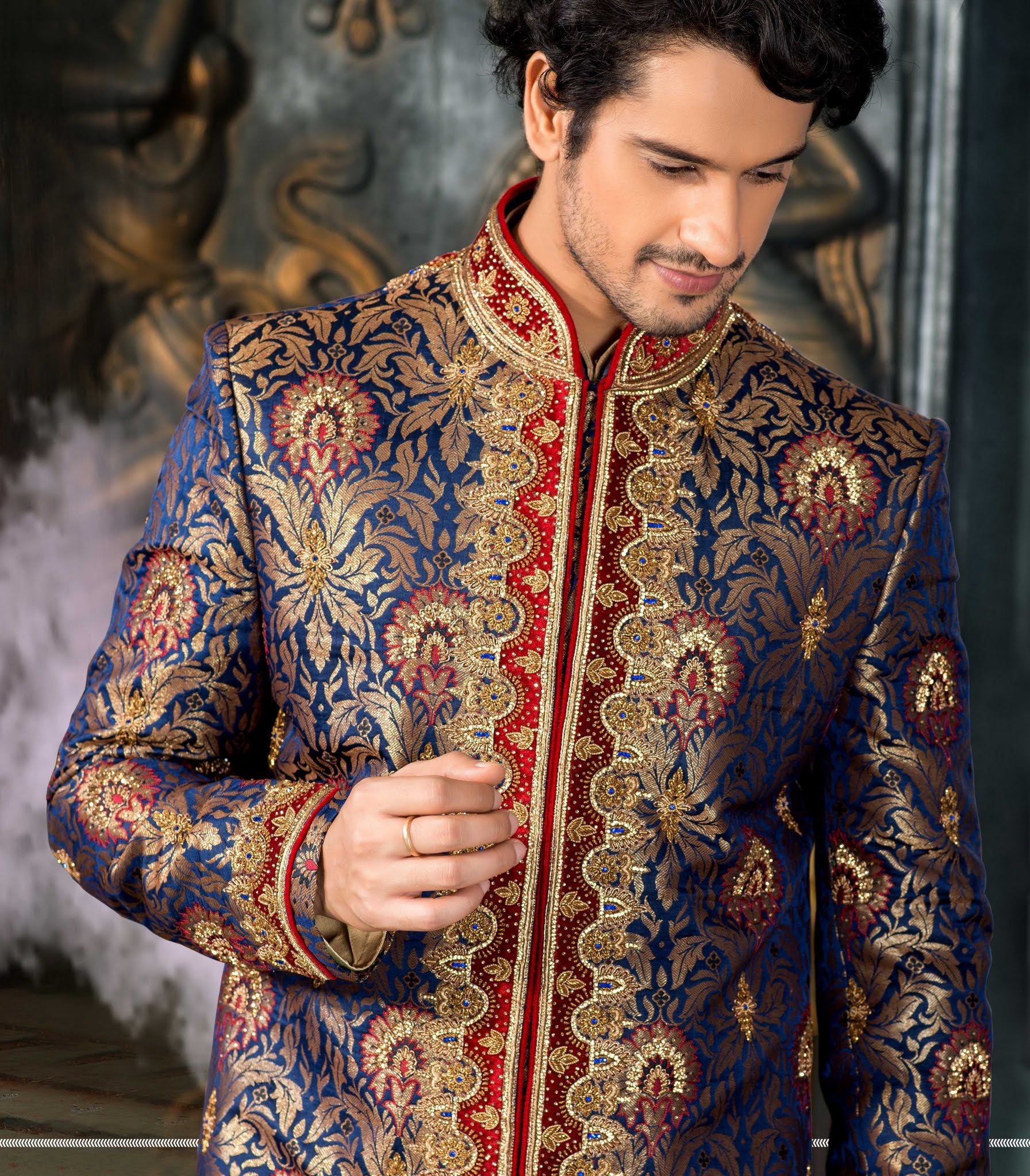 Blue Jamewar Pure Silk 3Pcs Indowestern