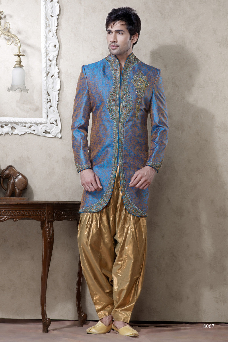 Blue N Brown Brocade Indowestern Sherwani