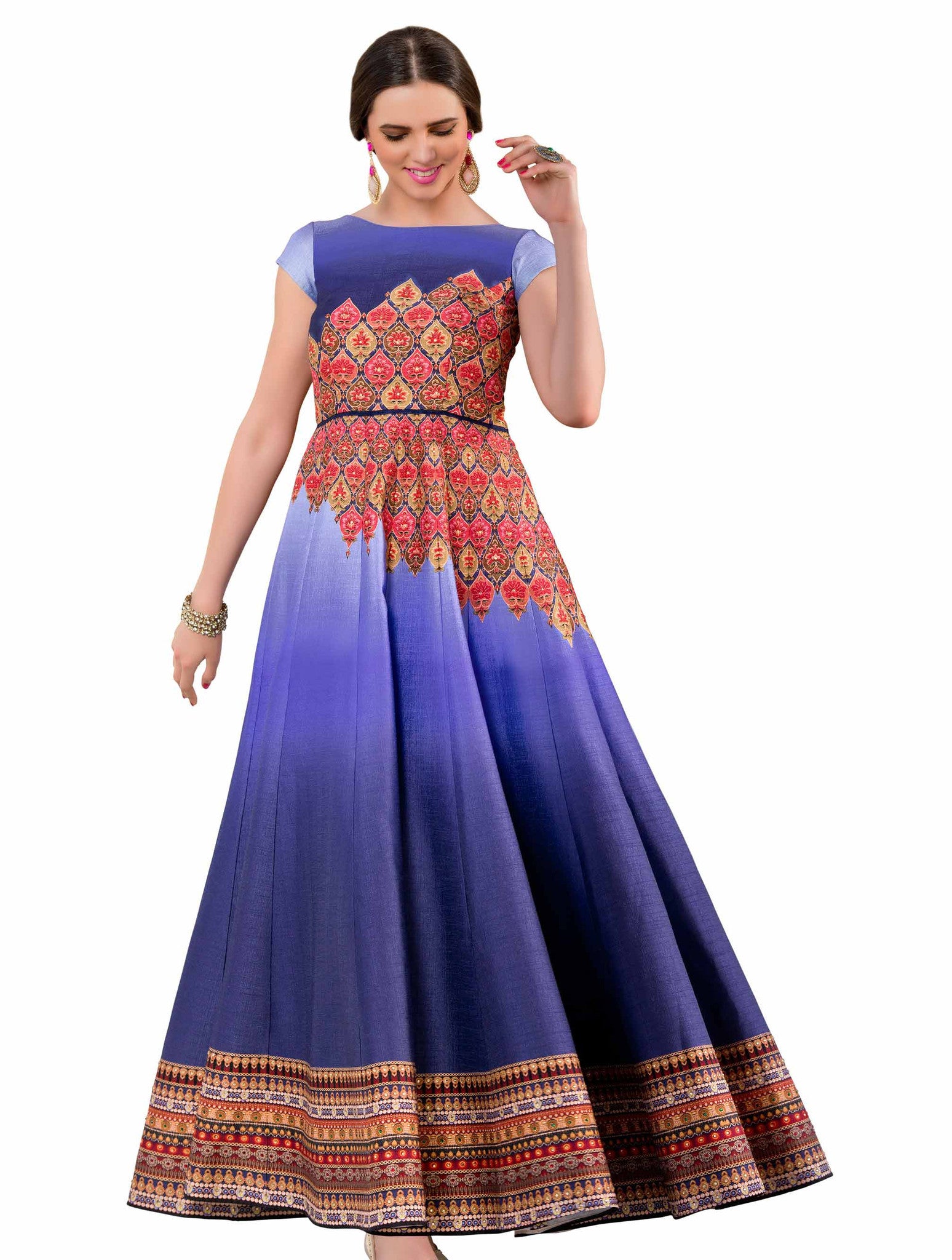Bring Attiude yours style Art silk Blue Printed work Digital prined Bridal Ethnic Semi Stich Gown