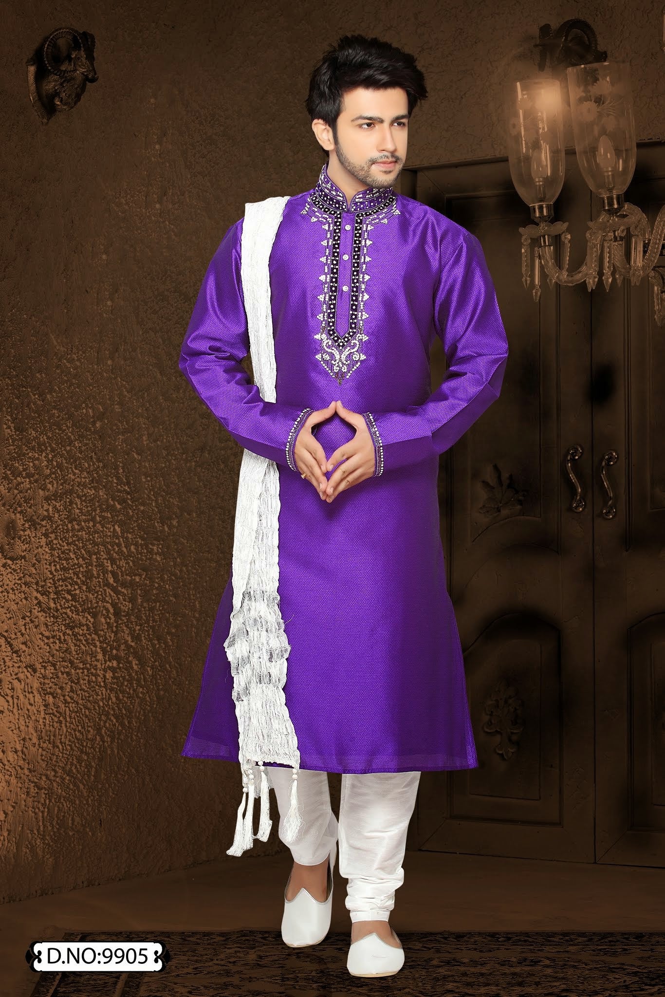 Purple Jacquard art silk Kurta Pyjama