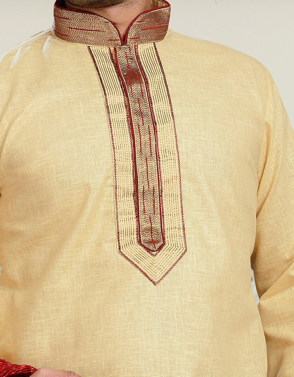 Tusser Cotton Linen Kurta Pyjama With Pintuck Work
