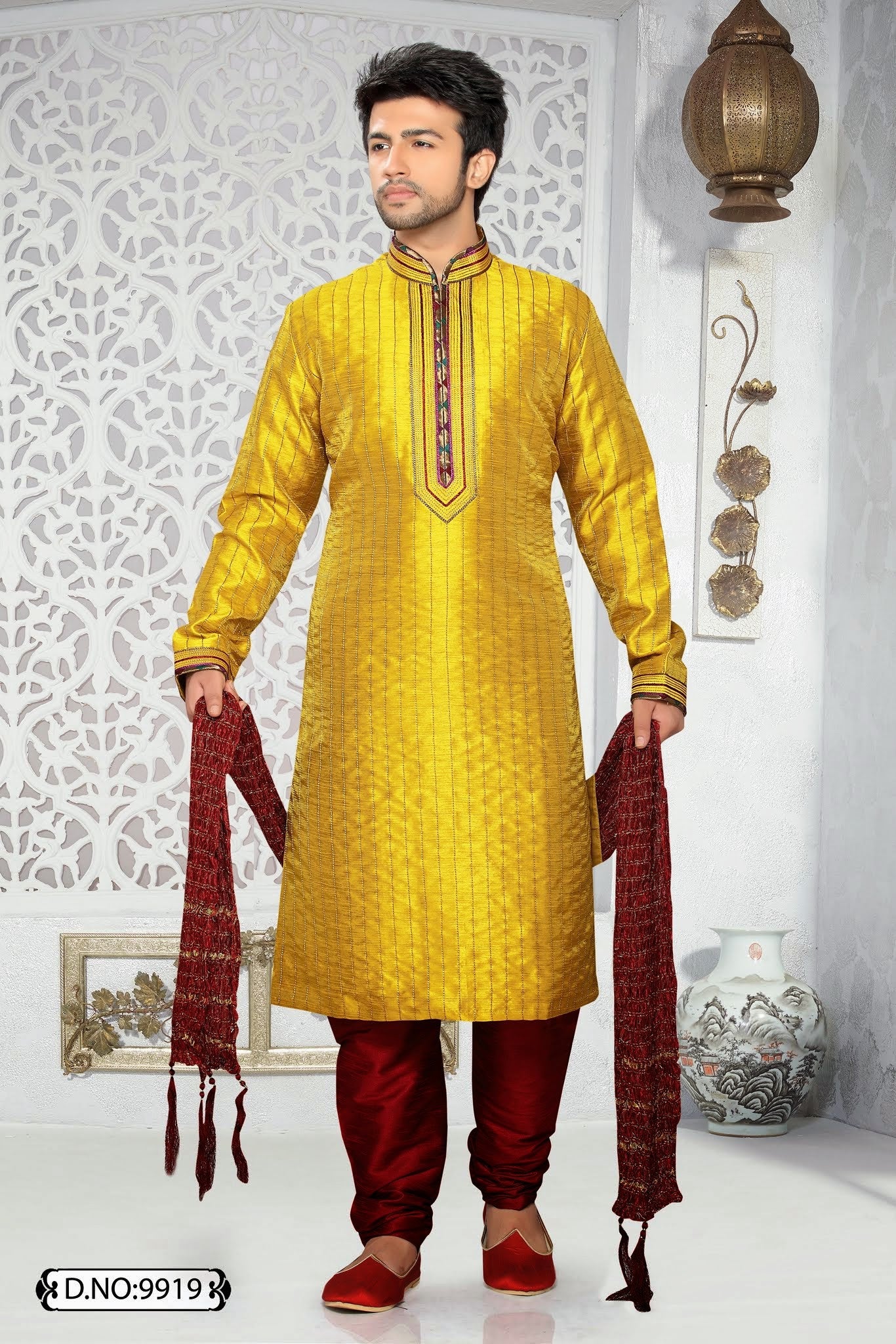 Yellow Art silk Kurta Pyjama